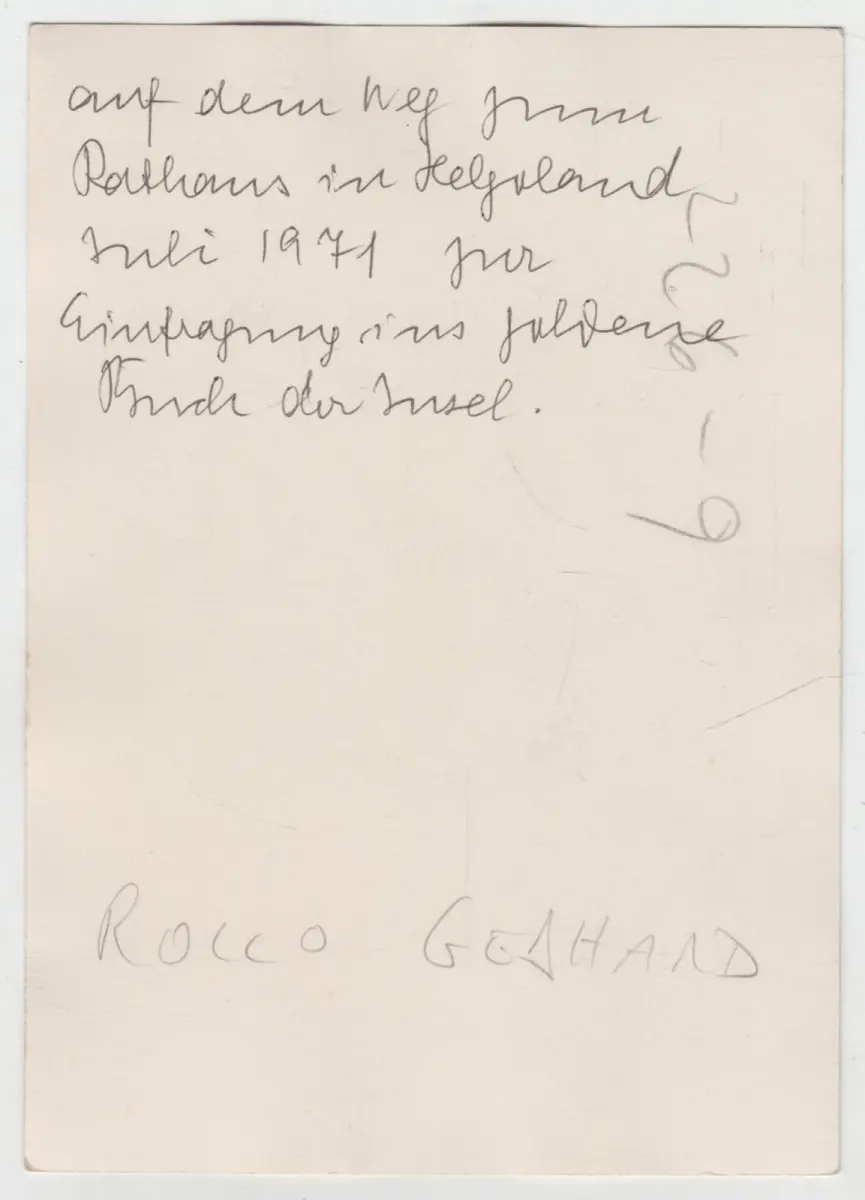 Bemerkungen: Alle 3 Artikel sind gut erhalten. Auf der Rückseite des Fotos ist handschriftlich notiert "Auf dem Weg zum Rathaus in Helgoland Juli 1971 zur Eintragung ins goldene Buch der Insel".