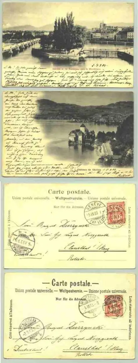2 x Genf 1903 (intern : 1020256) Artikelbeschreibung u. Zustand : Siehe Scan. Weitere Infos : Beide postalisch gelaufen 1903
