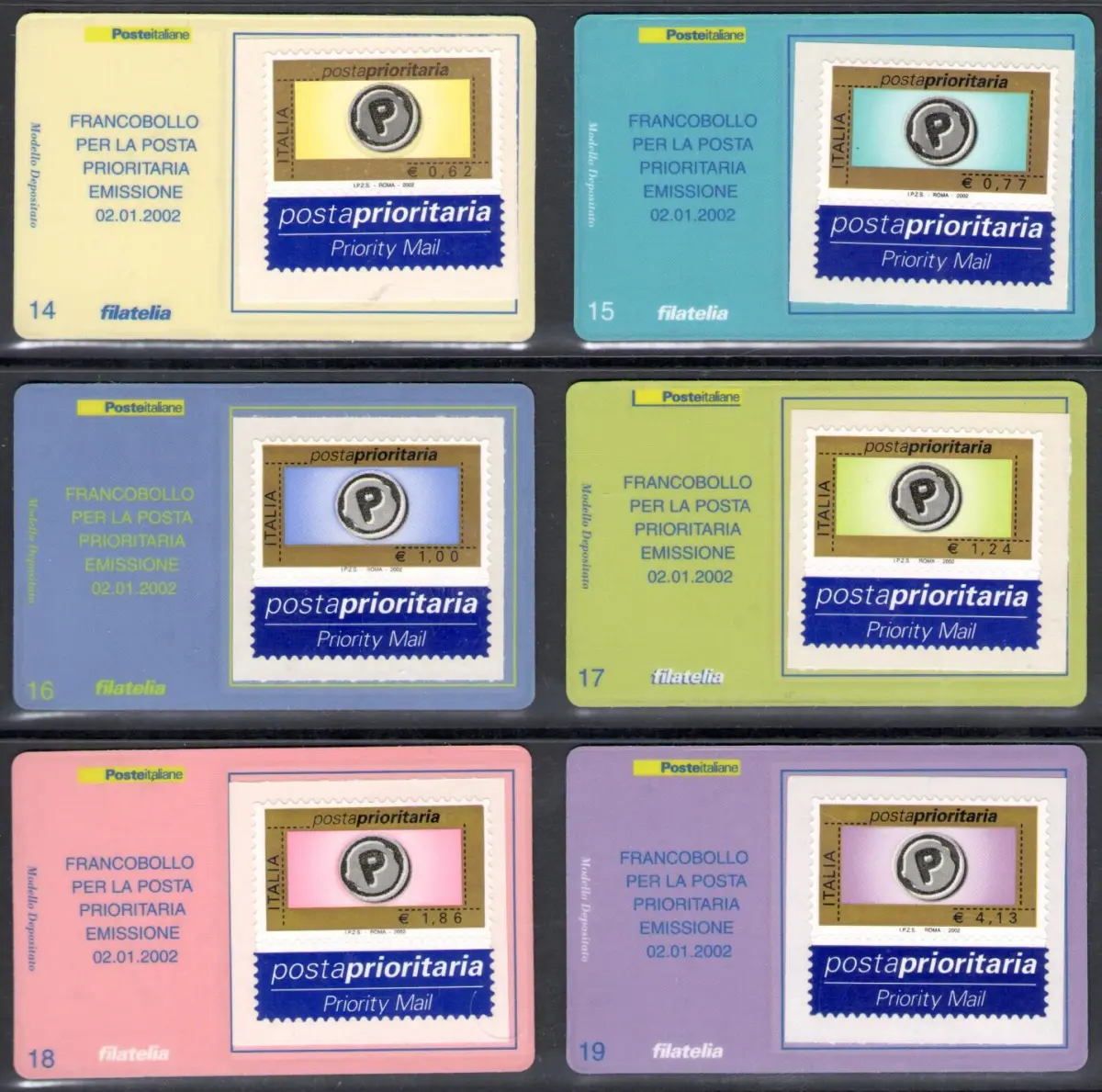 2002 Italien - Republik, Philateliekarten Nr. 74/79 Priority Post - MNH ** Einheitlicher Katalog Nr. 74/79 Euro 87 Regalmappe