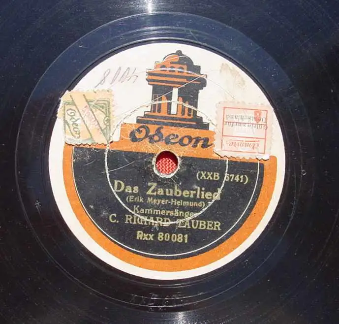 (2002341) C. Richard Tauber. Alte Schellack-Schallplatte. Siehe bitte Beschreibung u. Bilder C. Richard Tauber. Kammersänger. Titel A: 'Gute Nacht mein holdes süßes Mädchen' (Erik Meyer-Helmund). Titel B: 'Das Zauberlied'. Alte Schellack-Schallplatte ODEON. Durchmesser ca. 30 cm. Alle angebotenen Schellack-Schallplatten sind mehr oder weniger gebraucht. Zum Teil auch mit starken Gebrauchsspuren. Auch können sie etwas verschmutzt sein. Die Platten sind nicht probeabgespielt. Die Schellack-Platten sind Originale der damaligen Zeit und sind auch sehr beliebt nur als Nostalgieobjekt. Somit ist dieses Angebot vermutlich für jene Sammler nicht geeignet, die besonderen Wert legen auf exzellenten Zustand sowie auf einwandfreie Musikwiedergabe
