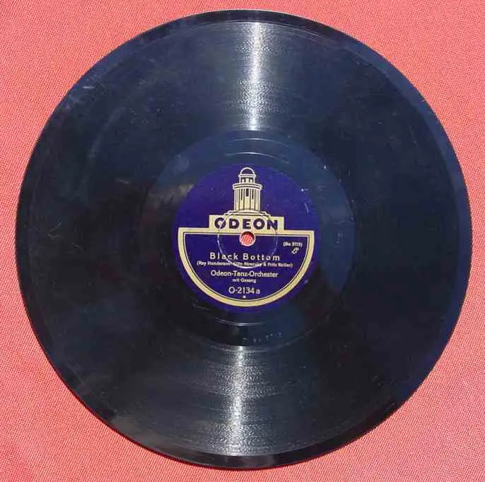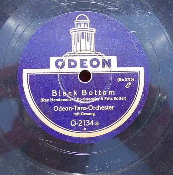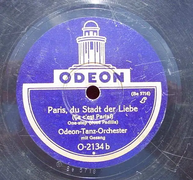 (2002372) Odeon-Tanz-Orchester. Mit Gesang. Alte Schellack-Schallplatte. Siehe bitte Beschreibung u. Bilder Odeon-Tanz-Orchester. Mit Gesang. Titel A: 'Black Bottom' (Ray Hendersen - Otto Stransky & Fritz Rotter). Titel B: 'Paris, du Stadt der Liebe' One step (José Padilla). Auf alter Schellack-Schallplatte Odeon (Nr. O-2134). Durchmesser ca. 25 cm. Alle angebotenen Schellack-Schallplatten sind mehr oder weniger gebraucht. Zum Teil auch mit starken Gebrauchsspuren. Auch können sie etwas verschmutzt sein. Die Platten sind nicht probeabgespielt. Die Schellack-Platten sind Originale der damaligen Zeit und sind auch sehr beliebt nur als Nostalgieobjekt. Somit ist dieses Angebot vermutlich für jene Sammler nicht geeignet, die besonderen Wert legen auf exzellenten Zustand sowie auf einwandfreie Musikwiedergabe