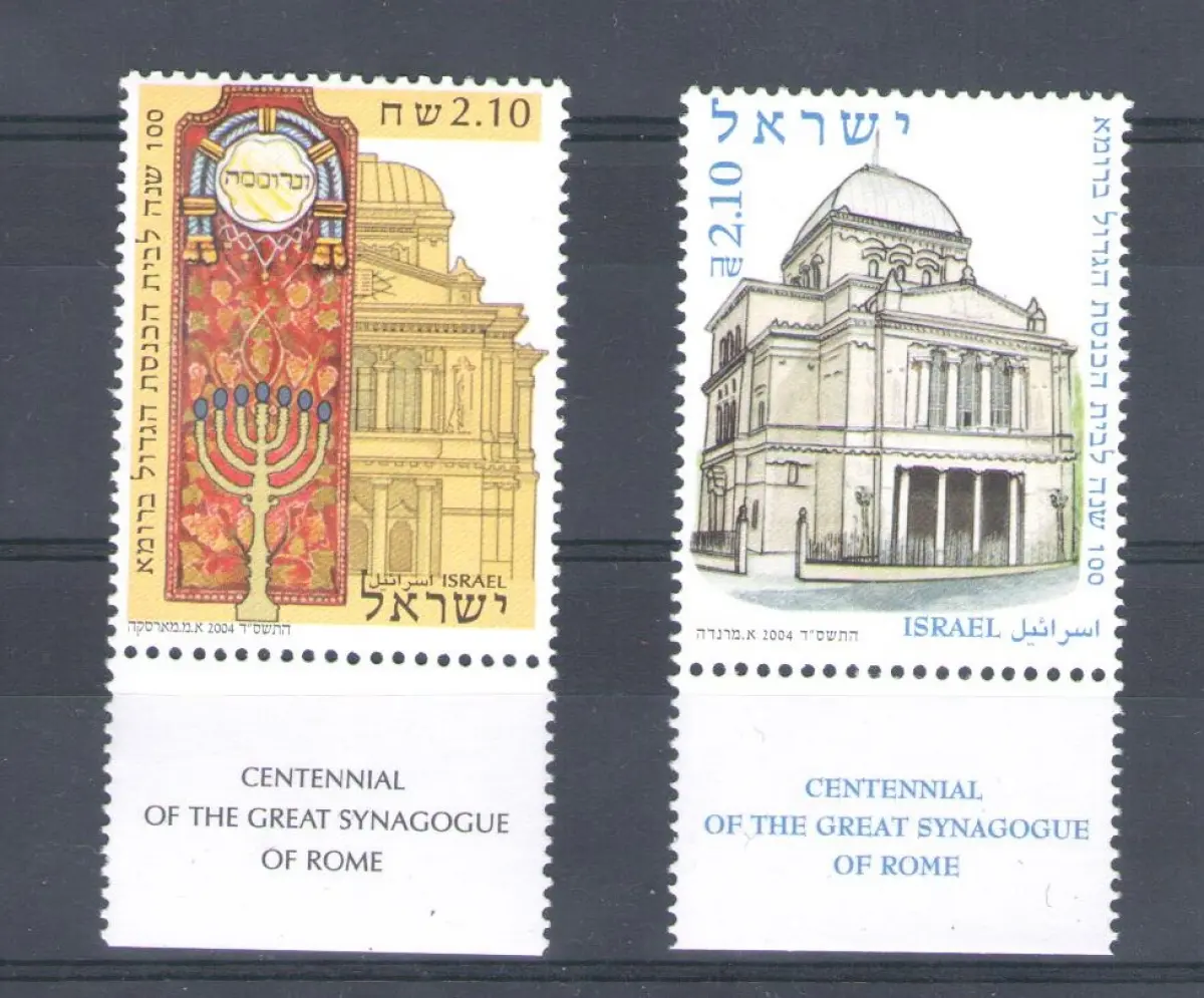 2004 Israel Hundertjahrfeier Einweihung Tempio Maggiore Rom Gemeinsame Ausgabe - 2 Werte mit MNH-Band **, gemeinsam mit Italien 2801-2802 Einheitskatalog 2018 Euro Sammlermarken - komplette Jahrgänge - Gemeinsame Ausgaben - postfrisch - Philatelie - Sammlung -