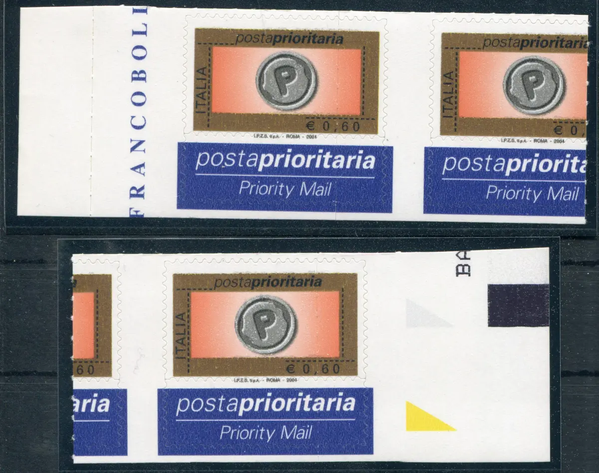 2004 Priority Post Euro 0,60 - 3 Sorten Vollgummi - MHN - - 2004 Priority Post Euro 0,60 Nr. 2747 ein horizontales Paar b. von f. links + einzeln b. von f. rechts alle mit stark nach links verschobener vertikaler Spur - Die drei Marken unterscheiden sich voneinander - Schönes Fachset der Ausgabe Cod. 872/14