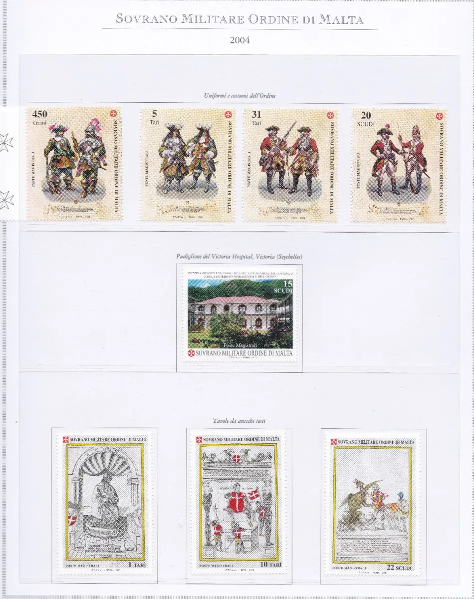 2004 Smom, kompletter Jahrgang, postfrische Marken, 28 Werte + 3 Zettel + 6 gebrauchte Marineblätter postfrisch - Militärsouveräner Malteserorden - Sammeln - Philatelie - komplette Jahrgänge -