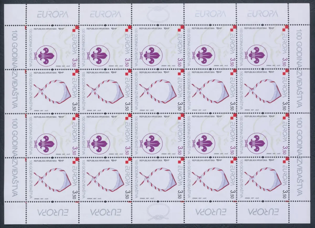 2007 EUROPA CEPT, Kroatien, 1 Kleinbogen mit 10 Paaren, 100 Jahre Pfadfinderschaft, postfrisch ** ref grünes Album 17