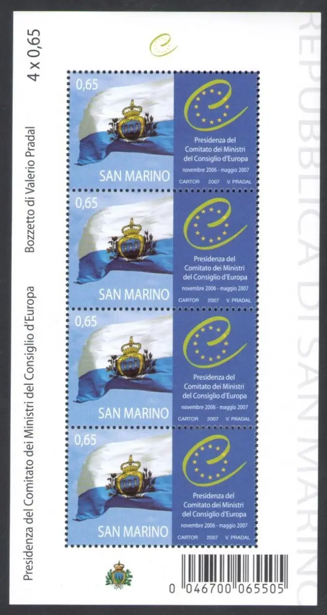 2007 San Marino, Präsident des Ministerkomitees des Europarates, BF 90 - MNH ** Einheitlicher Katalog Euro 7
