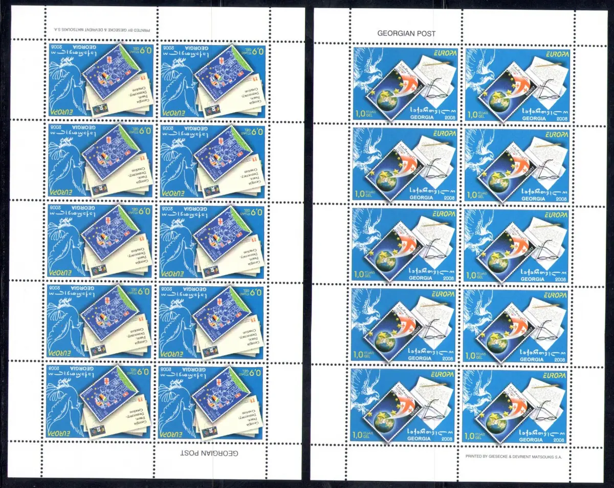 2008 EUROPA CEPT Georgia, La Lettera, 2 Kleinblätter mit 10 Werten, postfrisch **, neu und einwandfrei, Vollgummi und original.