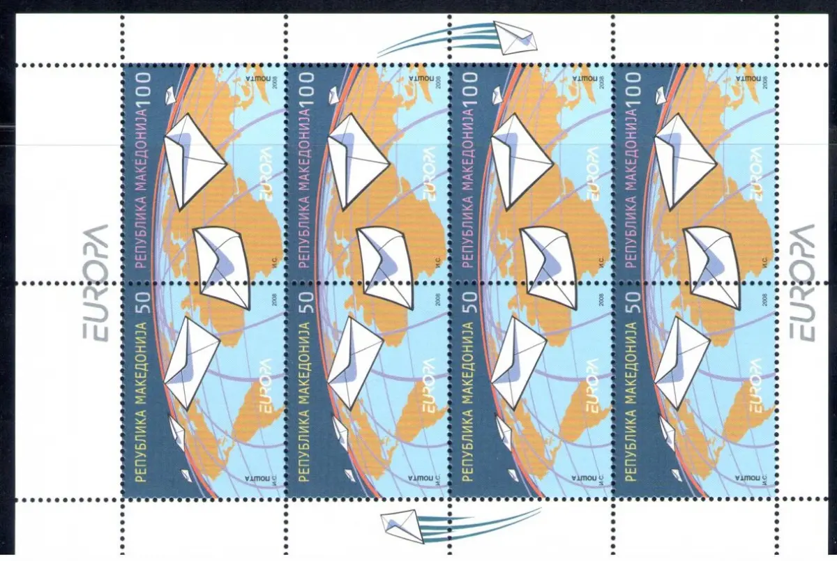 2008 EUROPA CEPT, Mazedonien, 1 Kleinbogen mit 10 Werten, postfrisch**, es handelt sich um neue und perfekte Kleinblätter mit Original- und Vollgummi.