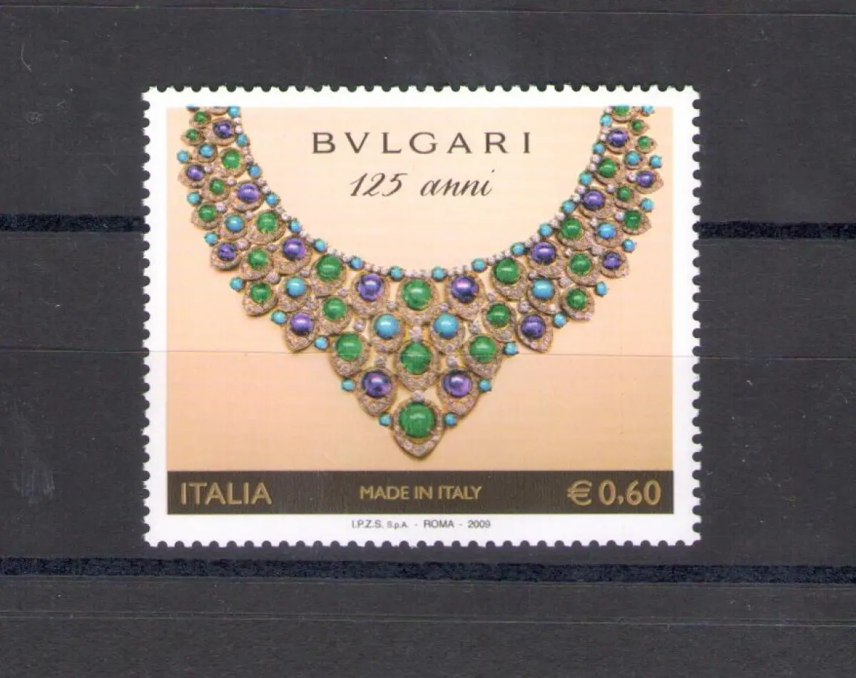 2009 Italien - Republik - Nr. 3081 Euro 0,60 Bulgari MNH / ** Verschiebung der Farbe Gelb und Gold, die eine braune anstelle von Schwarz-Färbung des unteren Bandes mit sich bringt. Doppelter Aufdruck der Aufschrift 'MADE IN ITALY'.