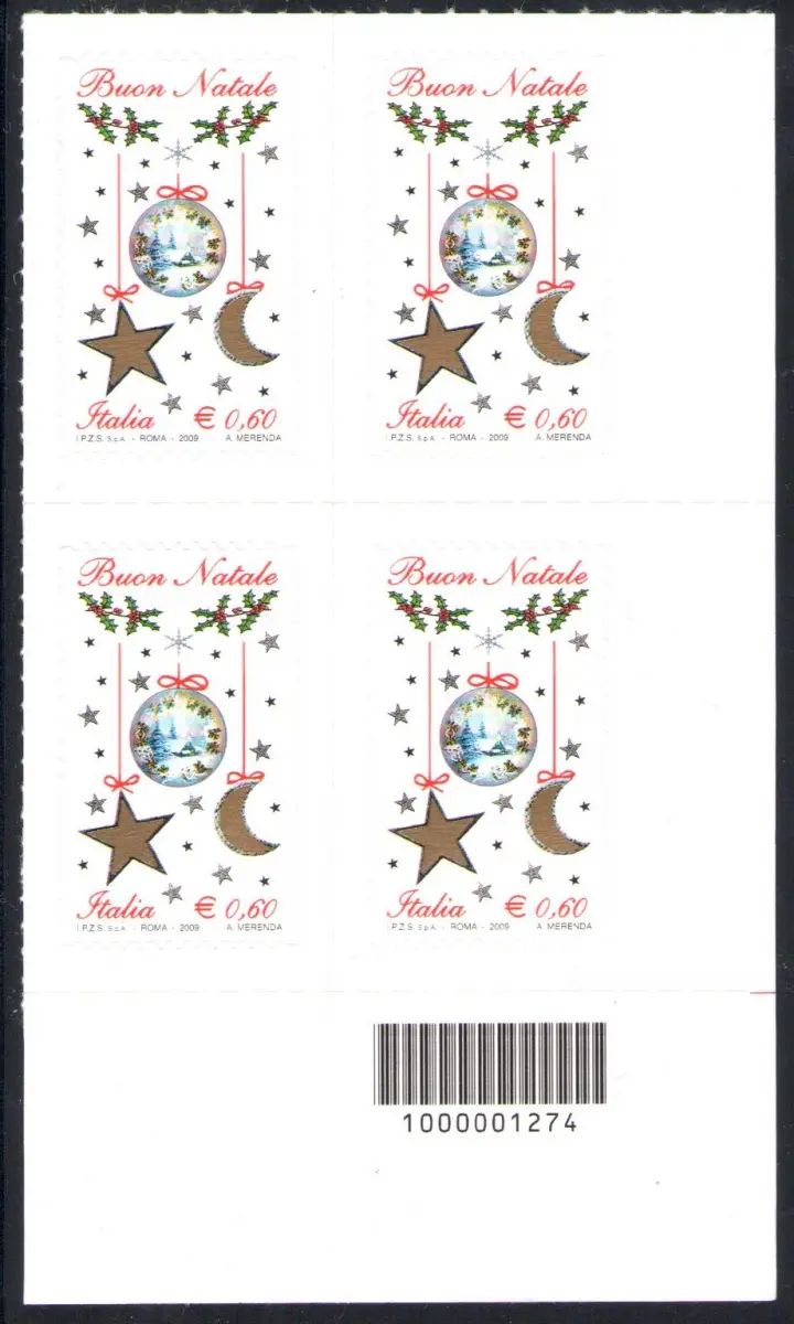 2009 Italienische Republik Barcodes Weihnachten Laico Quartina 1 Val Barcode Nr. 1274 MNH ** Die seltenste perfekte Briefmarke, neu, Vollgummi und Original.