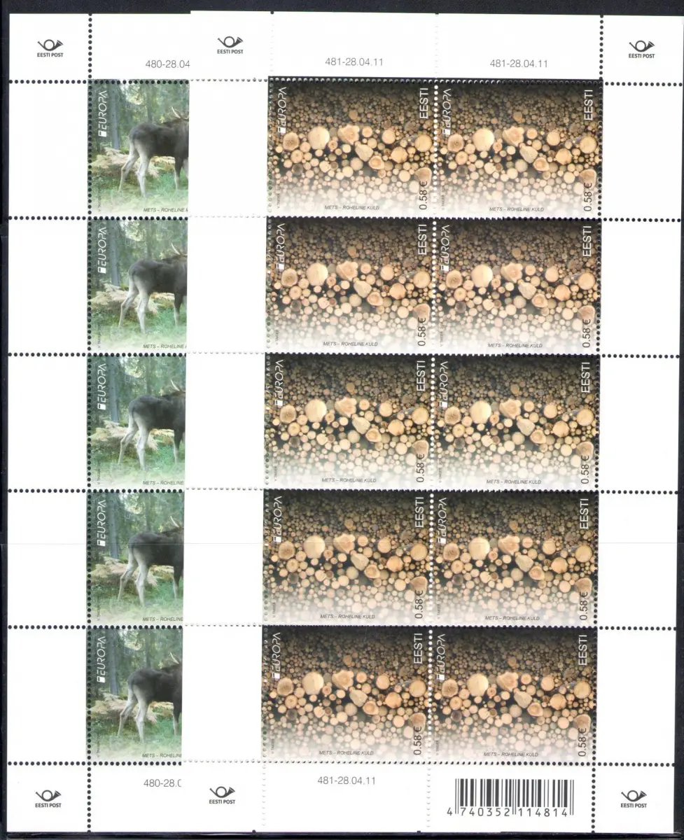 2011 EUROPA CEPT Estland, 2 Miniblätter mit 10 Werten, Die Wälder, postfrisch **