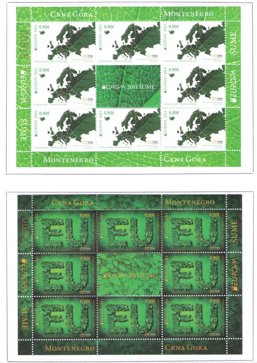 2011 EUROPA CEPT Montenegro 2 Miniblätter mit 9 Werten, Le Foreste, postfrisch **
