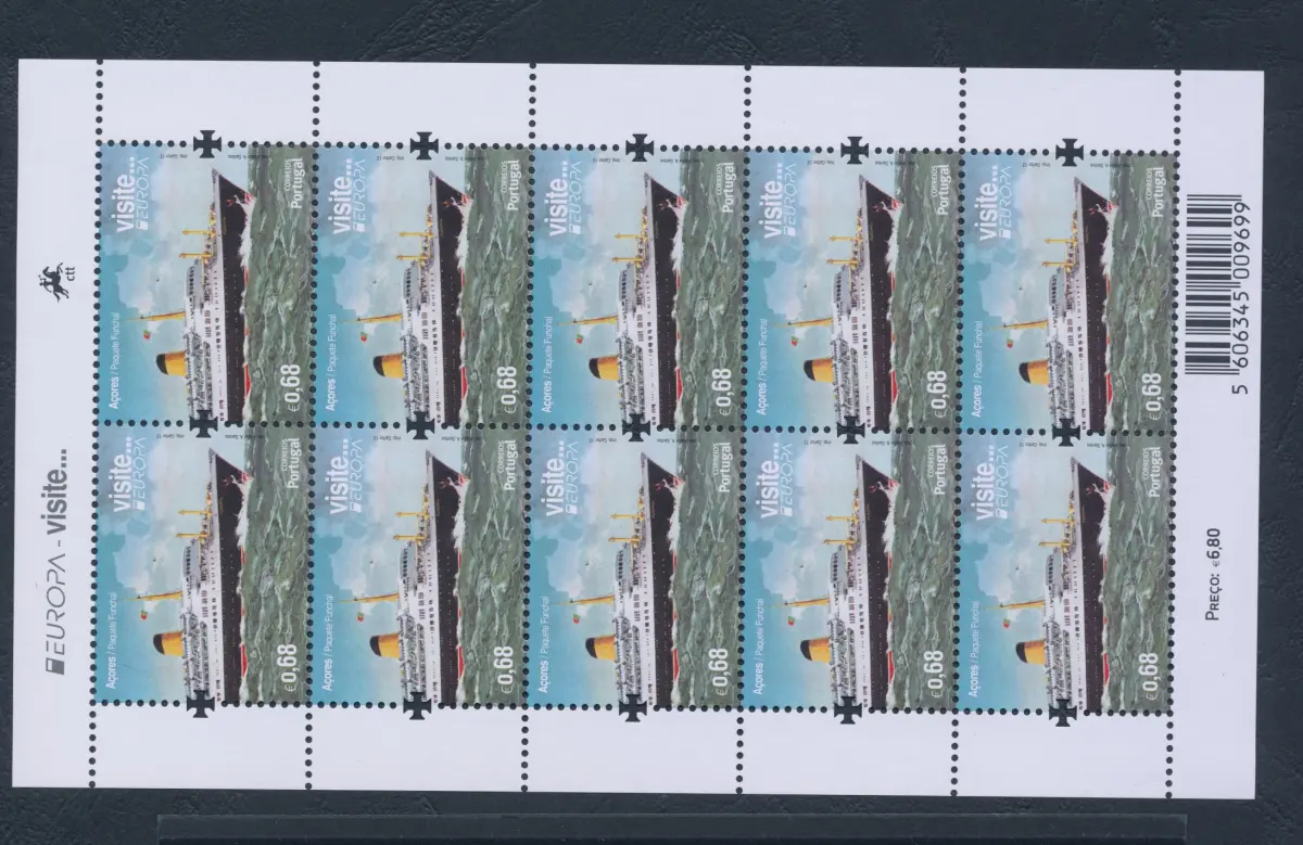 2012 EUROPA CEPT Azoren, 1 Kleinbogen von 10 Serien, Tourismus, postfrisch **