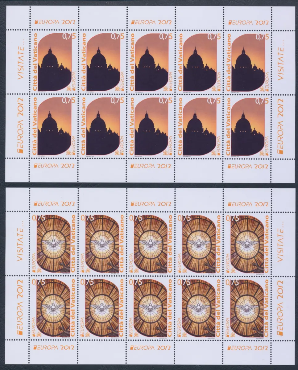 2012 EUROPA CEPT, Vatikan, 2 Miniblätter mit 10 Werten, Tourismus, postfrisch **