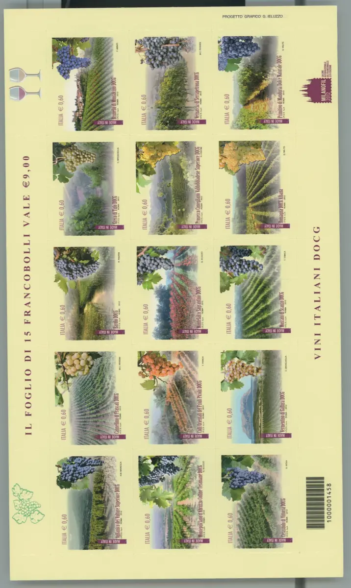 2012 Italienische Republik, Minifogli Il Vino - 'Made in Italy', BF 75, MNH ** Einheitlicher Katalog 2021 Euro 35 Italien - Philatelie - Sammlung - komplette Jahrgänge - postfrisch - Gedenkzettel - Wein
