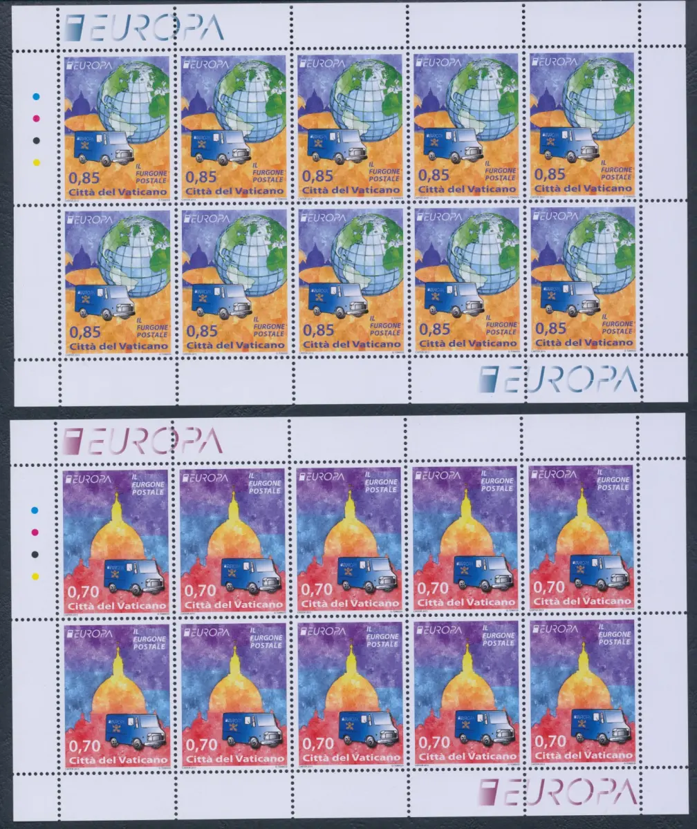 2013 EUROPA CEPT, Vatikan, 2 Miniblätter mit 10 Werten, Postfahrzeuge, postfrisch **