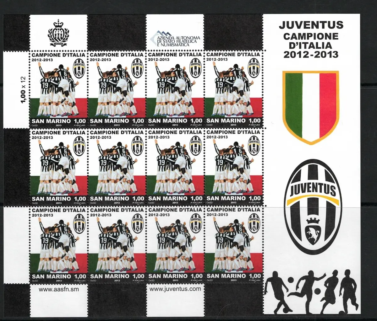 2013 San Marino, Juventus Campione d'Italia 2012-2013 Minifoglio, MNH **