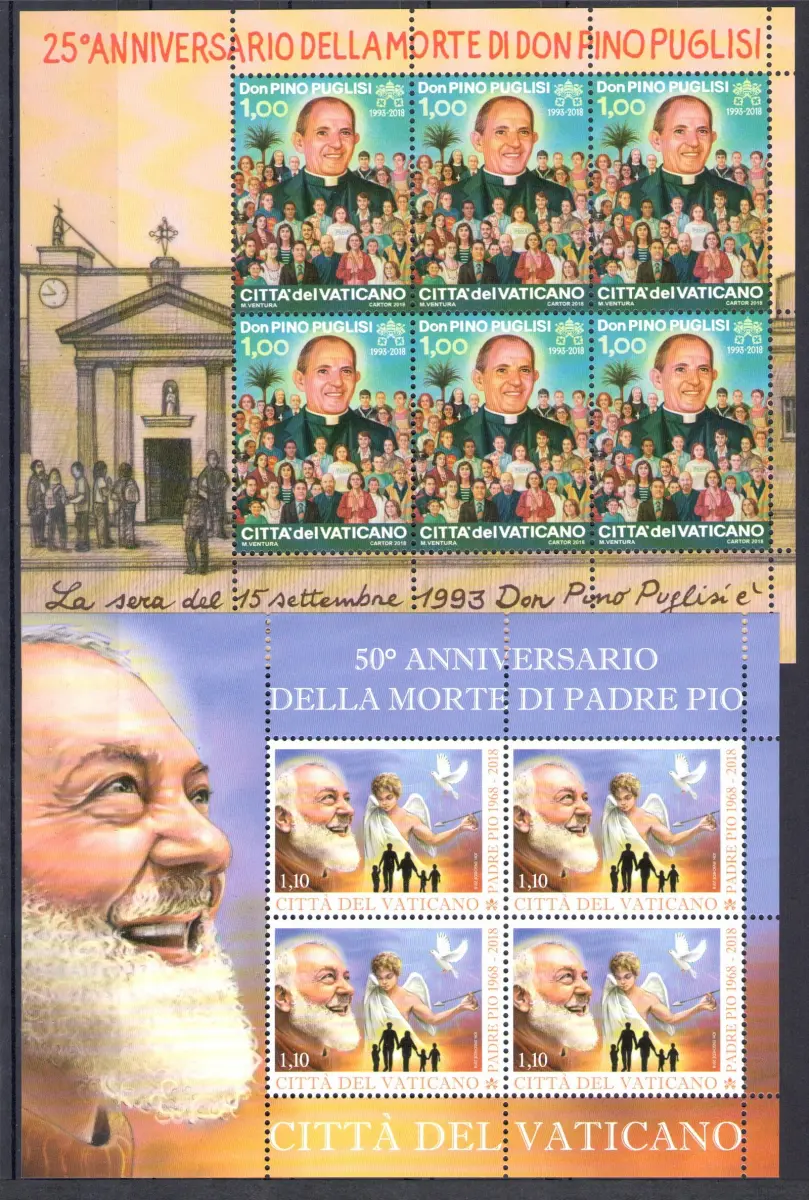 2018 Vatikan, kompletter Jahrgang 28 Val + 4 BF + 1 Libretto Santo Natale + 4 Minibögen (Apulis + Vater Pio + Florenz + Menschenrechte) Siehe MNH-Scan ** Alle von der Vatikanstadt im Laufe des Jahres 2018 ausgegebenen Gedenkmarken, Briefmarken, neu und einwandfrei, Vollgummi und original.