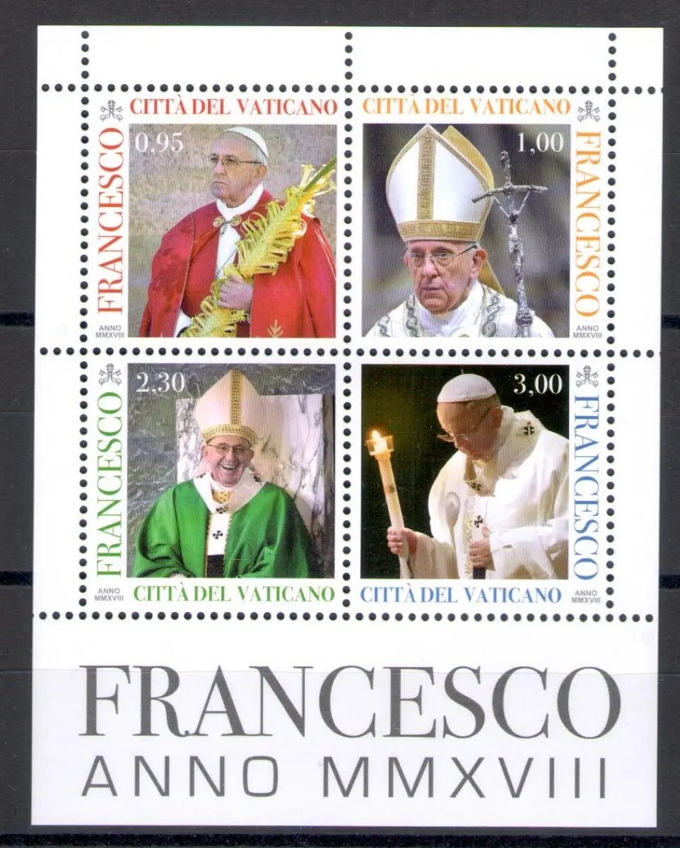 2018 Vatikan Zettel Papst Franziskus Jahr MMXVIII, neu und perfekt - MNH ** Serie von Gedenkmarken, ausgegeben von der Vatikanstadt im Zettel, neu und perfekt, Vollgummi und original.