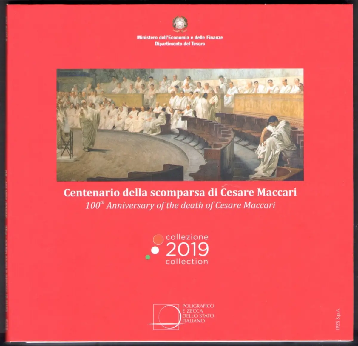 2019 ITALIEN, Box - Folder + Münzen von Cesare Maccari 1840-1940, 1.200 MNH-Auflagen ** In der von der italienischen Post hergestellten Schachtel befindet sich der Folder (1200 nummerierte Auflage) + 1 Serie Münzen der italienischen Münze mit 9 Münzen mit 5-Euro-Silbermünze zum Gedenken an 100. Todestag von Cesare Maccari. (100. Anniversary of the death of Cesare Maccari) Im Ordner: