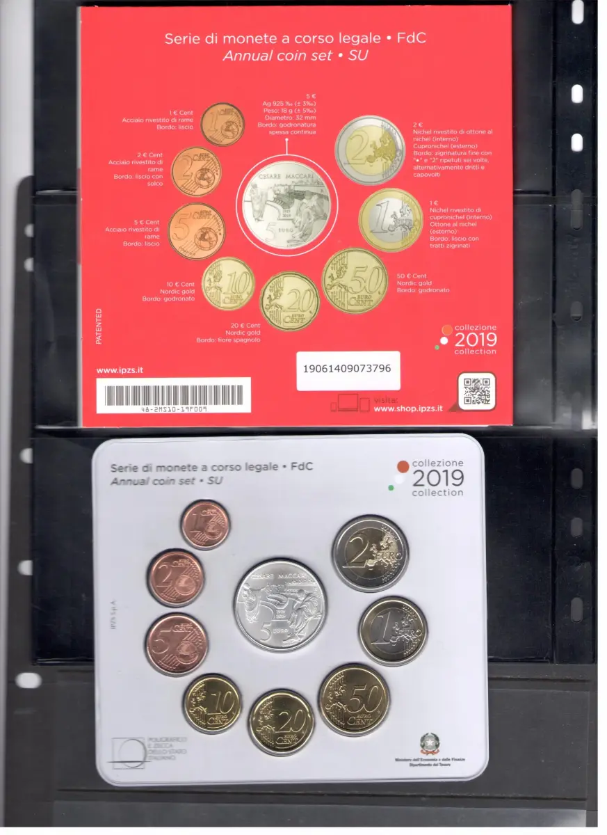 2019 ITALIEN, Box - Folder Cesare Maccari + Münzserie mit 9 Werten mit Silber - 1.200 Auflage postfrisch **