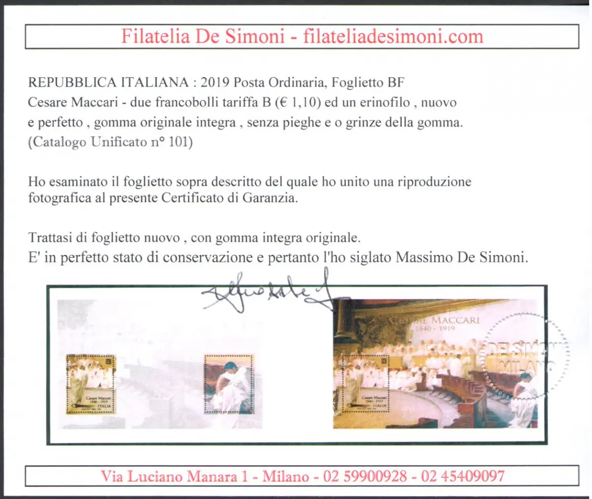 2019 Italien, Maccari-Blatt Nr. 114A ungefaltet nicht nummeriert