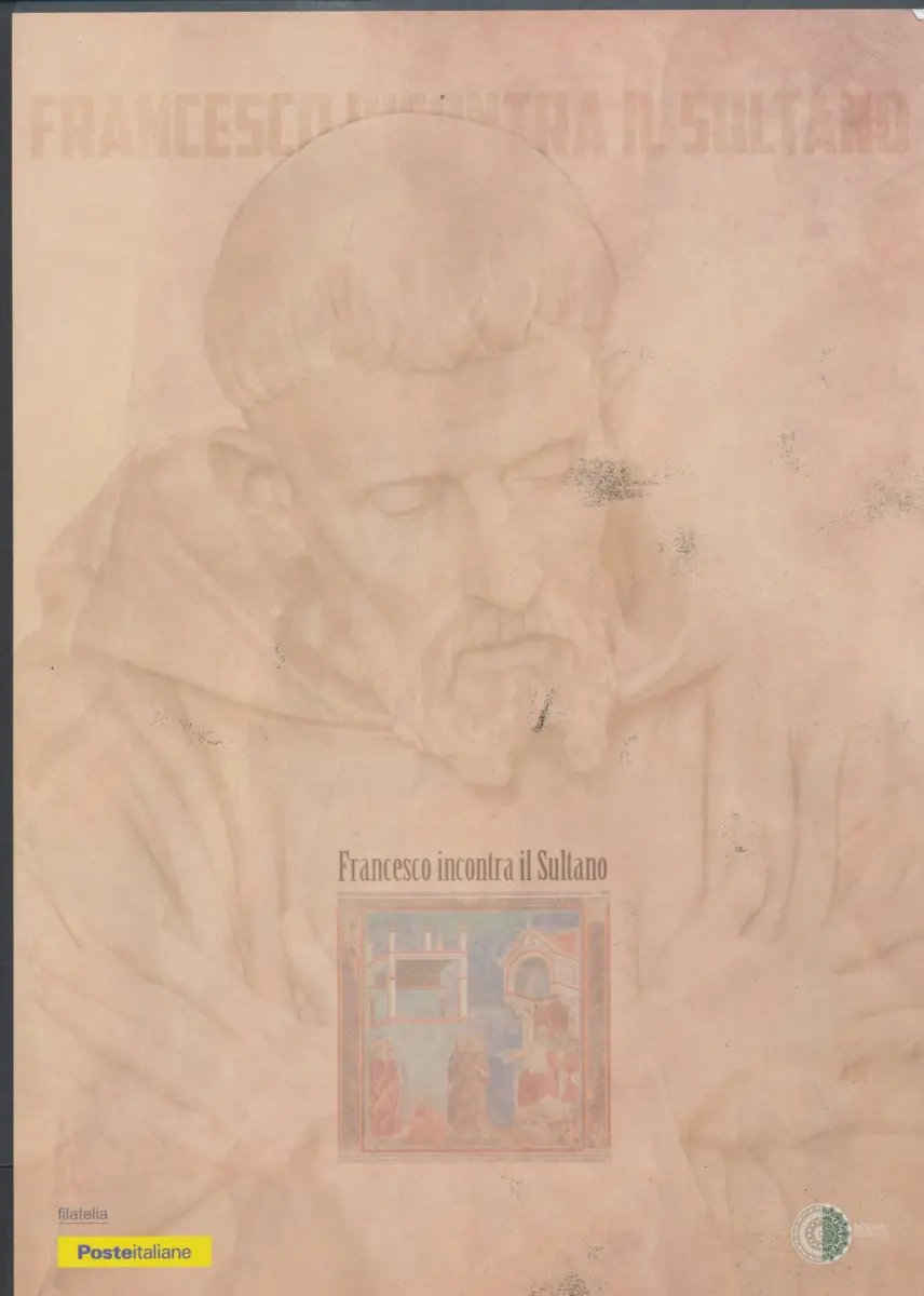 2019 Italien - Republik, Folder - San Francesco con il Sultan Nr. 639 - MNH ** Inhalt: 1 Briefmarke, 1 Postkarte, 1 Ersttagsumschlag Es handelt sich um einen neuen und perfekten Folder, der aus der Post stammt. hohes linkes Regal Einheitskatalog Nr. 639