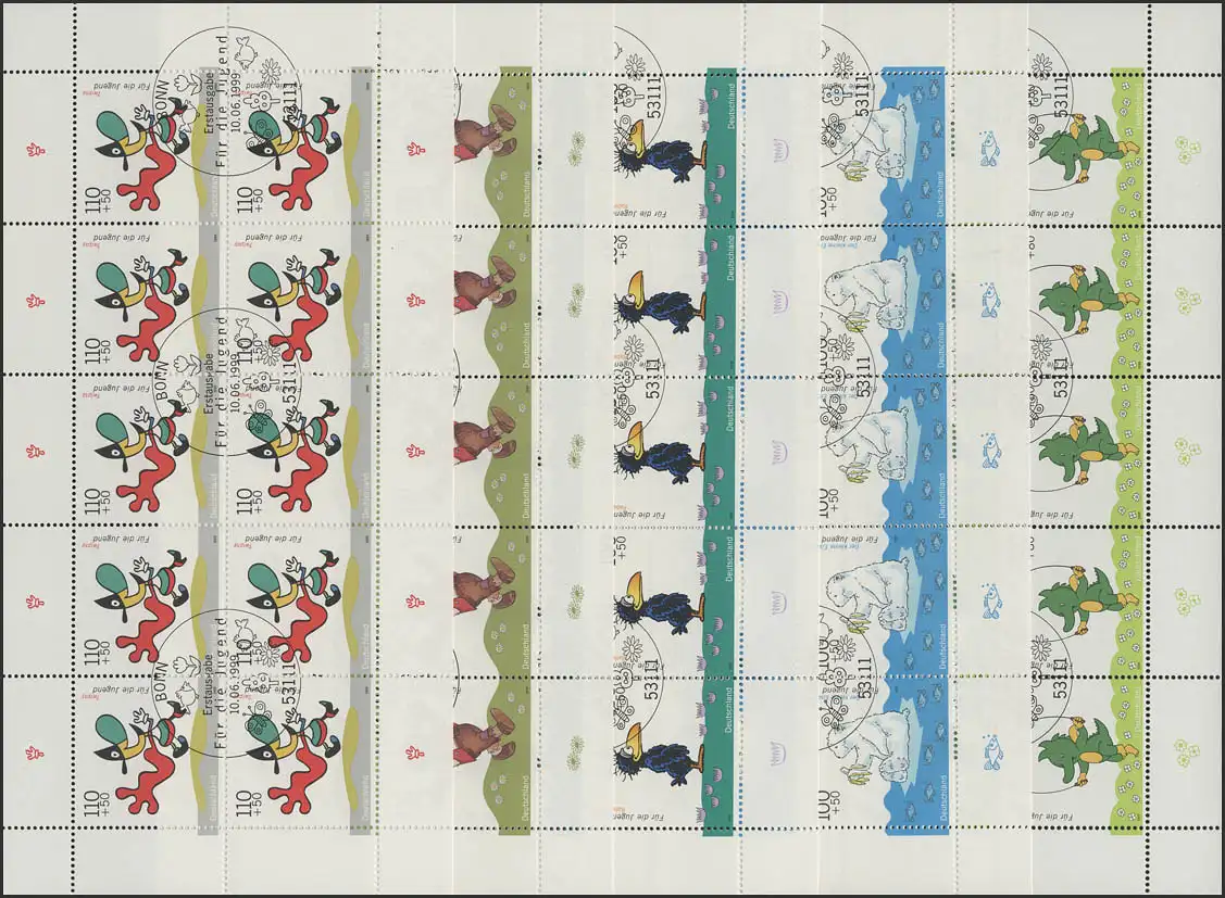 2055-2059 Jugend Trickfilm Tabaluga, Mecki, Lars etc. - 10er-Bogen ESSt