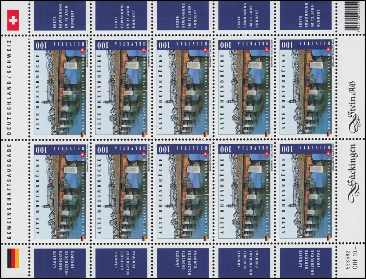 2068 Alte Rheinbrücke Bad Säckingen - Stein / Aargau 2008, Kleinbogen **