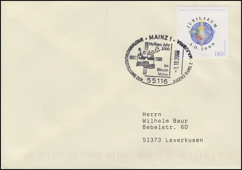 2087 Anno Domini 2000, EF Bf SSt Mainz Heiliges Jahr im Bistum Mainz 1.10.2000