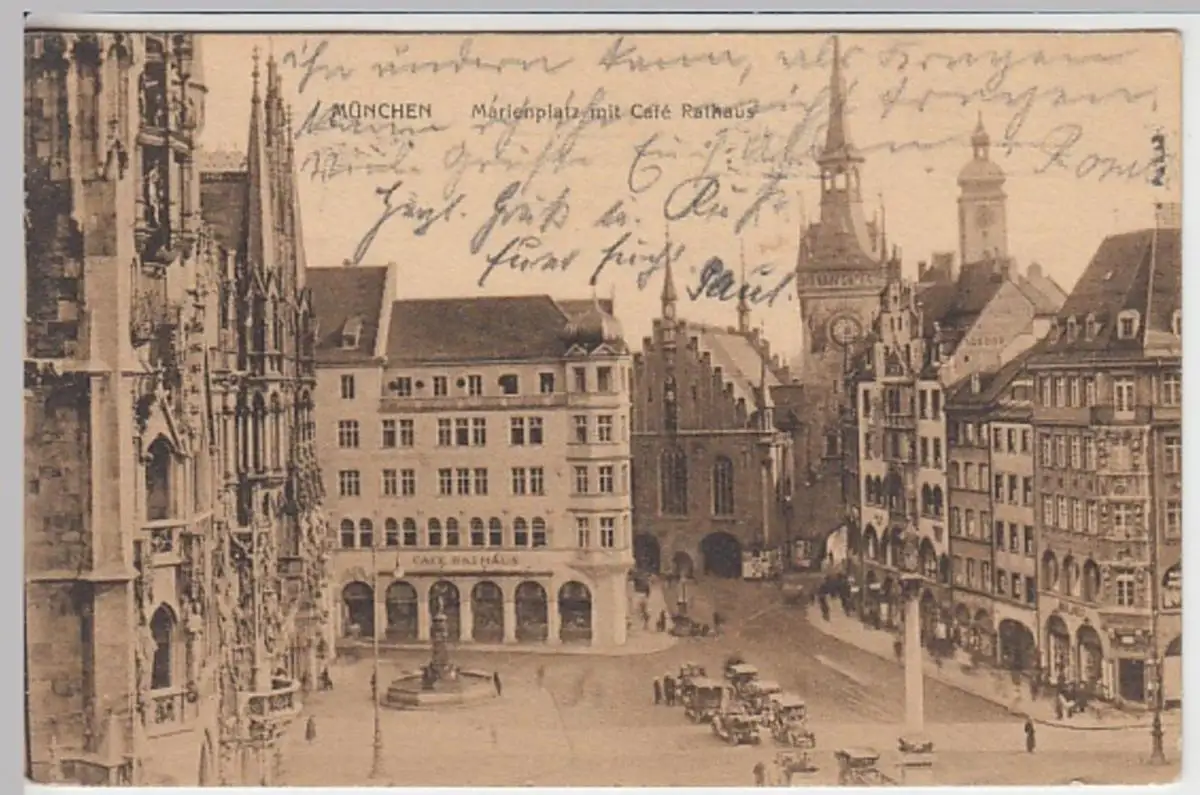 - (20917) Ansichtskarte, postcard, PPC - München, Marienplatz, Cafe Rathaus 1914