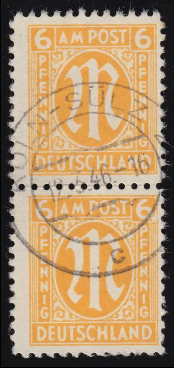 20IX AM-Post 6 Pf im Paar mit PLF IX weißer Fleck, KÖLN-SÜLZ 12.3.46