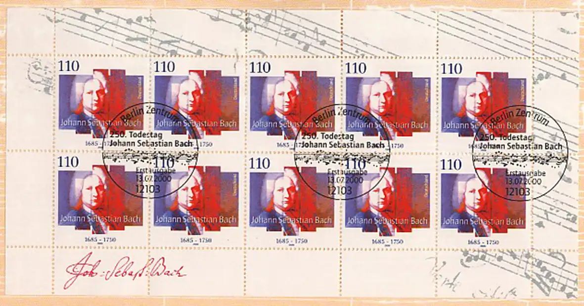 2126 Johann Sebastian Bach - 10er-Bogen auf Kartonvorlage, ESST
