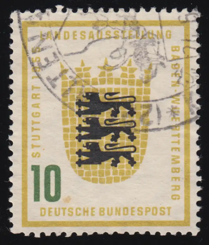 213 Baden-Württ. 10 Pf mit Fleck neben der 0 über TS, gestempelt O