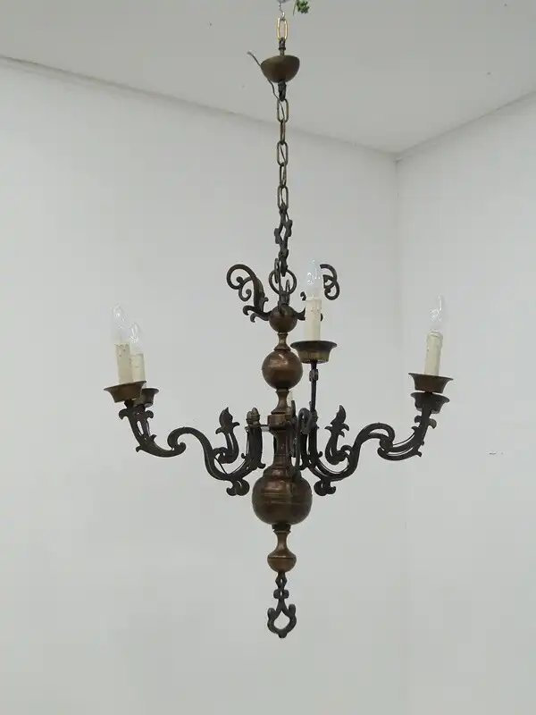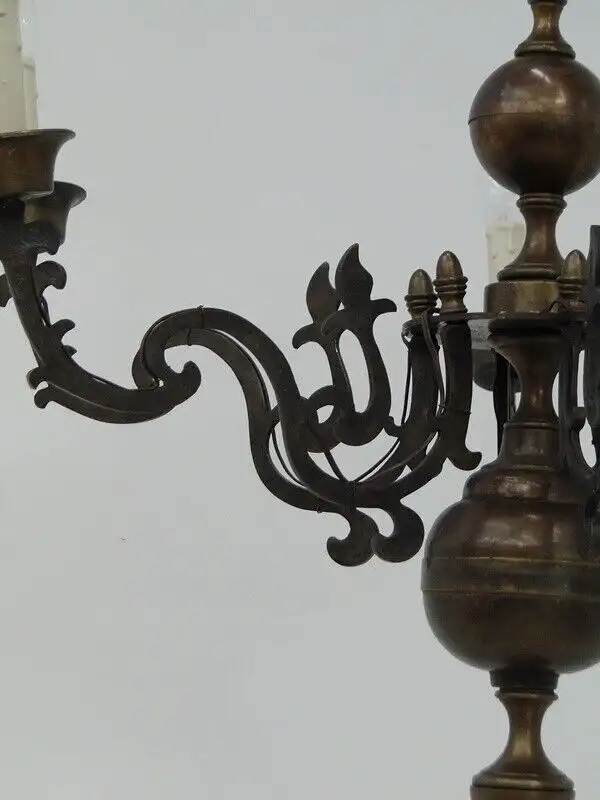 Ein herrlicher Polenluster, Messing, sehr schwer und massiv, keine Gewähr auf die Elektronik, da wir nicht sagen können, ob diese der geltenden Norm entspricht, exkl. Leuchtmittel. Wie auf den Bildern ersichtlich ist noch die alte Verkabelung vorhanden, diese gehört bestimmt erneuert, eine Reinigung wäre empfehlenswert. \n\nMaße: Durchmesser: ca. 70 cm breit ca. 115 cm hoch \n\nArtikelnummer: 2175D H