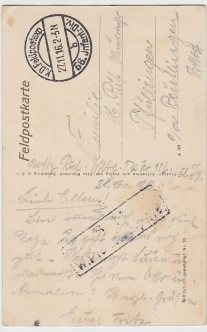 - (21902) Ansichtskarte, postcard, PPC - Nordfrankreich, zerstörte Häuser, Feldpost 1916