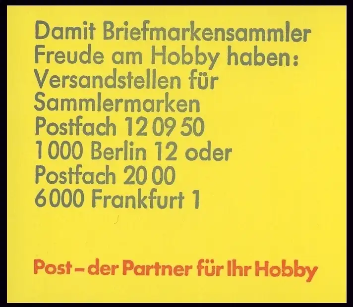Ein Angebot in Briefmarken BRD Markenheftchen - 4.759 weitere Angebote in dieser Kategorie