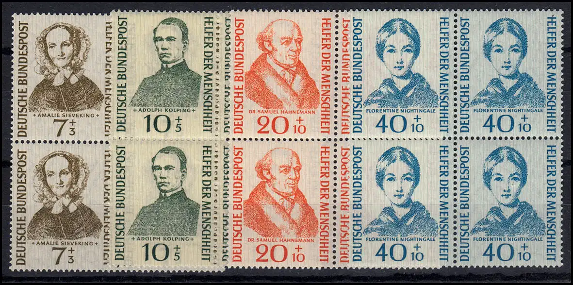 222-225 Wohlfahrt Helfer 1955, Satz in Viererblöcken, ungefaltet, postfrisch **