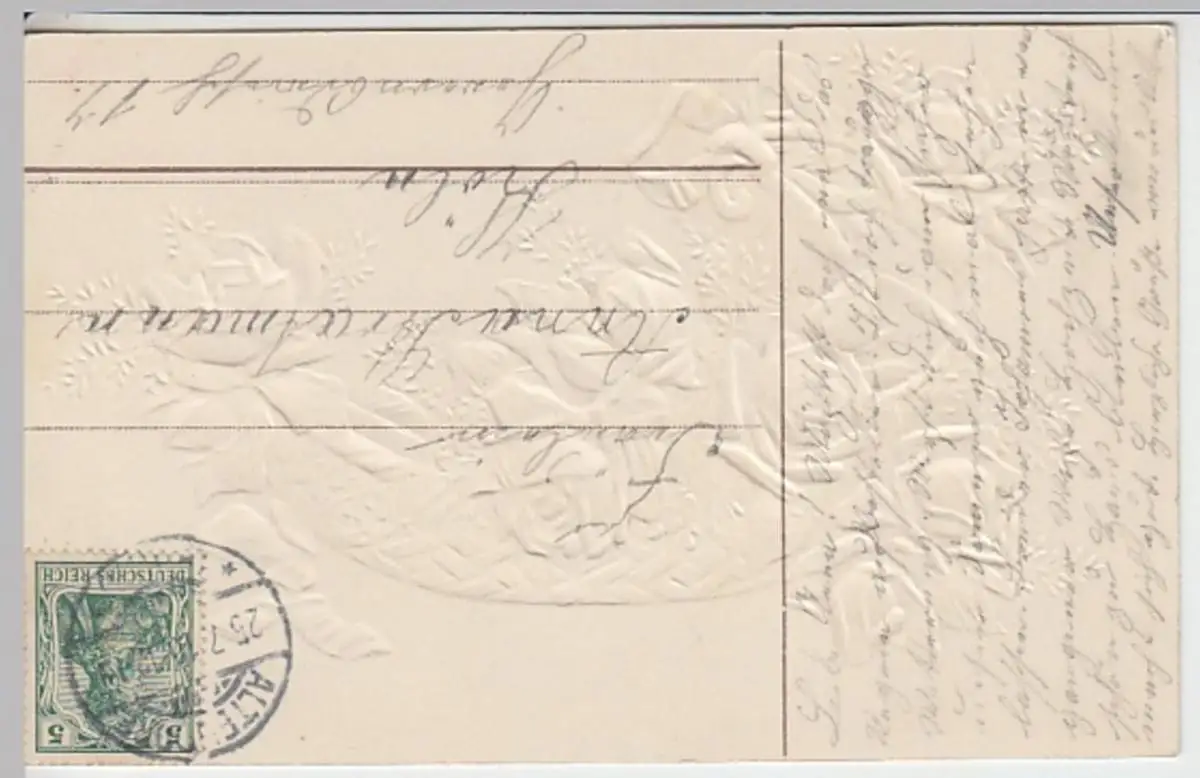 - (22345) Ansichtskarte, postcard, PPC - Namenstag, Rosenkorb, Prägekarte 1910