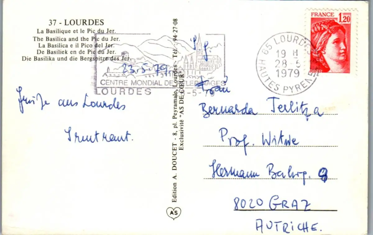 22755 - Frankreich - Lourdes , La Basilique et le Pic du jer - gelaufen 1979