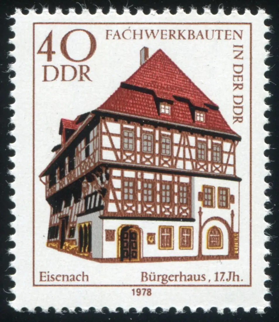 2298 Fachwerk 40 Pf mit PLF oberer Schatten des Erkers mit Einkerbung, Feld 5 **