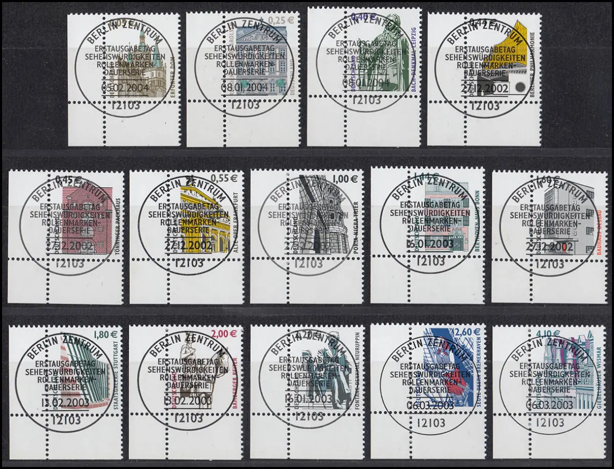2298 ff SWK 14 Werte mit Euro-Währung komplett, Ecken unten links, ESST Berlin
