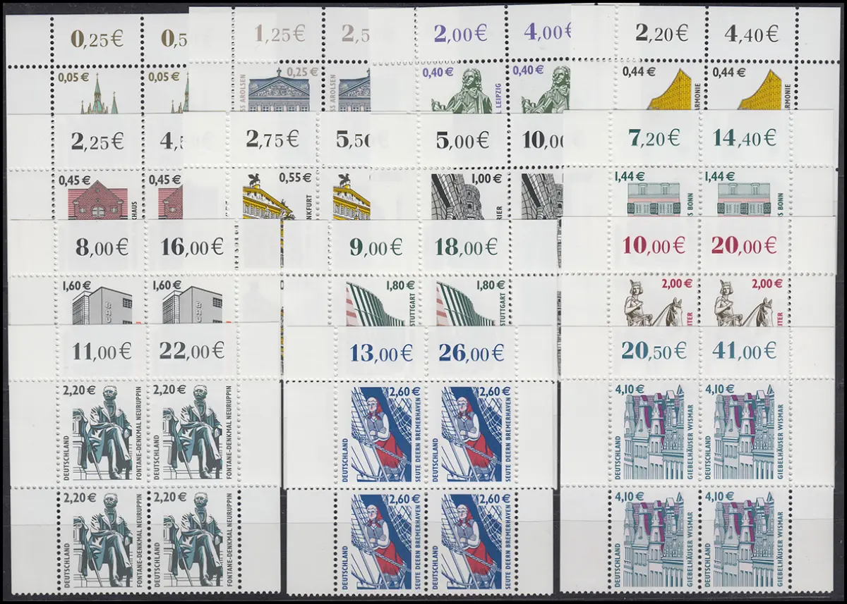 2298 ff SWK 14 Werte mit Euro-Währung komplett, Viererblock oben **