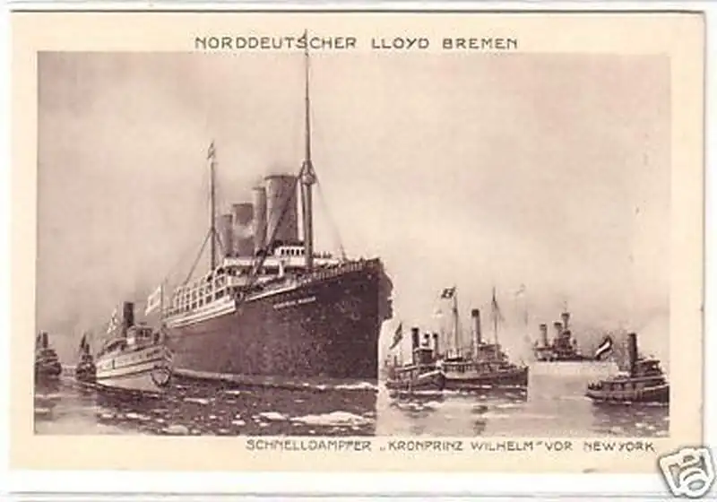 Schiff des Norddeutschen Lloyd Bremen vor New York, Linie Bremen Southhampton Cherbourg New York, ungelaufen, gute Erhaltung siehe Bild,