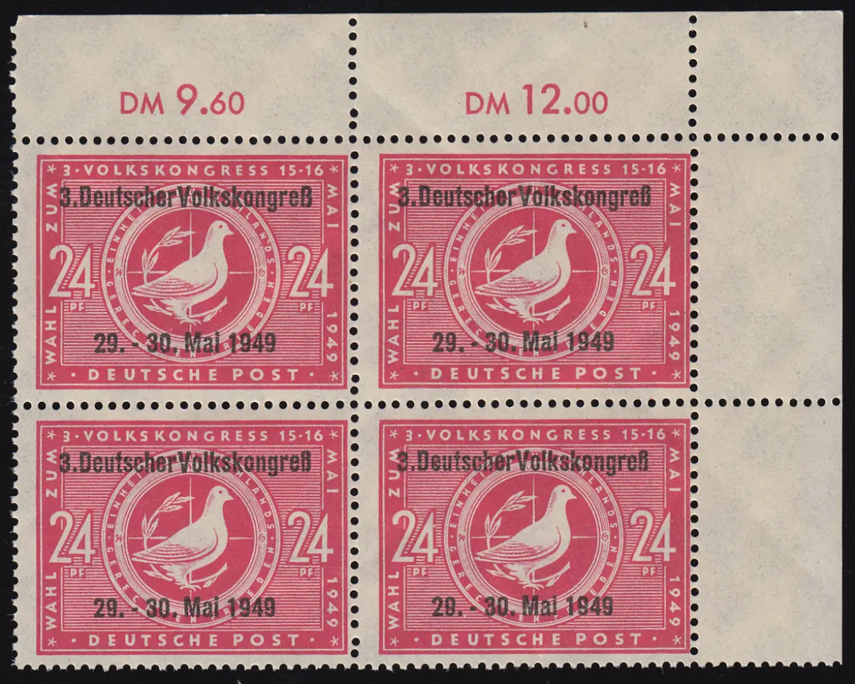 233 Volkskongress Eck-Viererblock oben rechts Type I-II-II-II, postfrisch **
