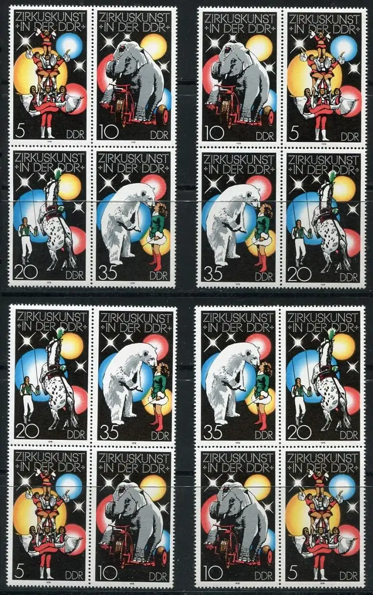 2364-2367 Zirkuskunst in der DDR 1978, 4 verschiedene Viererblöcke, Set **