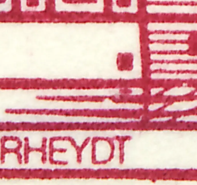 Loth/Loth; 4.DS: Klischee-Variante a: i von Postwertzeichen steht links vom ersten l von Versandstellen mit 3 Plattenfehlern: Rahmenausbuchtung, Fensterkreuzbruch, Kerbe in Wasserlinie, alle auf Feld 8