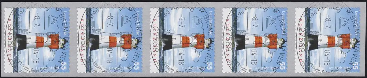 2413 Leuchtturm sk, 5er-Streifen mit UNGERADER Nummer, ESSt Bremerhaven