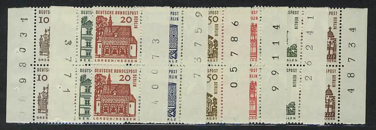 242-249 Bauwerke 8 Werte, Paare mit Randzähler, Satz ** postfrisch