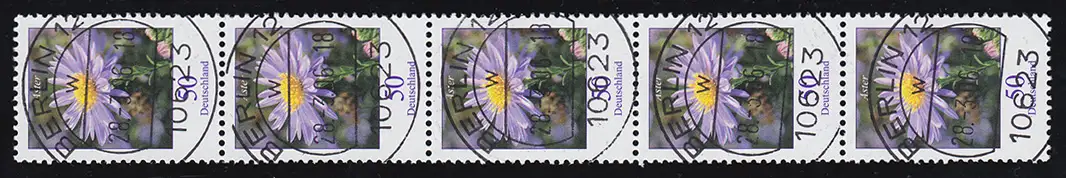 2463 Aster als 5er-Streifen mit VS-O BERLIN 28.3.06 mit Nummer 185